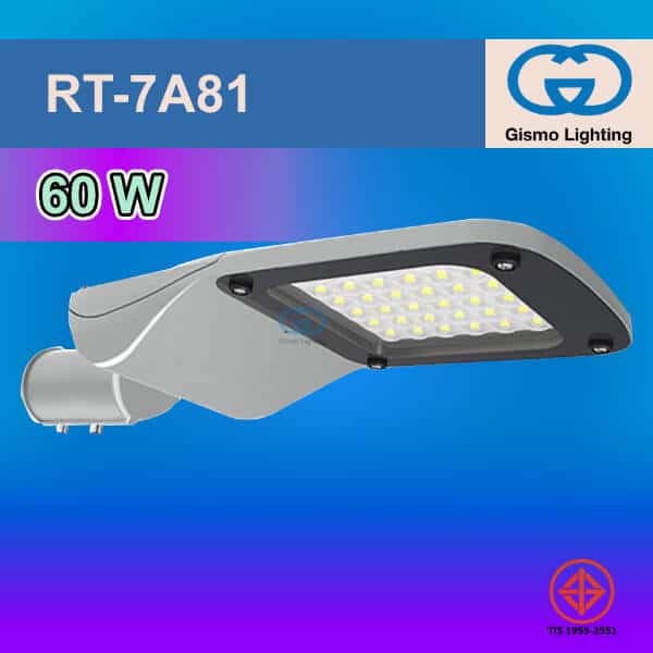 โคมไฟถนน ที่ไม่จำเป็นต้องติดตั้งบนถนน RT-7A81-060 โคมไฟถนน Street Light LED 60W จาก Gismo Lighting ติดตั้งบนถนน แสงสว่าง ผ่านมาตราฐานกรมทางหลวง ติดในปั๊ม หรือลานจอด ก็สว่าง ดูดี แสงสม่ำเสมอ